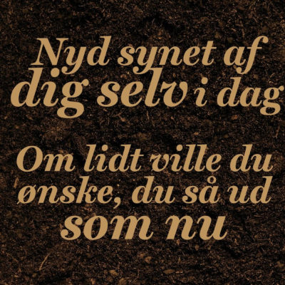 Man kan jo stadig se godt ud, hvis ellers lyset lige falder rigtigt. Og éns hjerne fungerer jo stadig. Lidt langsommere, men den fungerer. Man kan jo gøre lige, hvad man vil: Sælge alt og rejse hele jorden rundt, hvis man har lyst. Og gå på kurser. Dygtiggøre sig. Starte helt forfra. Og lade sig skille. Vise det her selvforherligende ungdomsregime, at alder er en styrke. Fanden tage os!